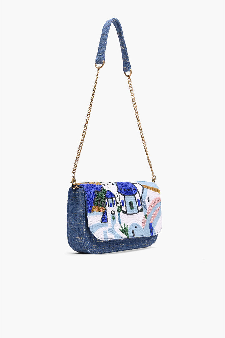 Santorini Sky Beaded Shoulder Bag – Your Greek Island Escape in One Swing