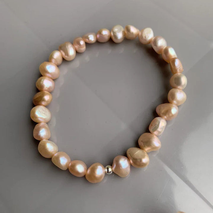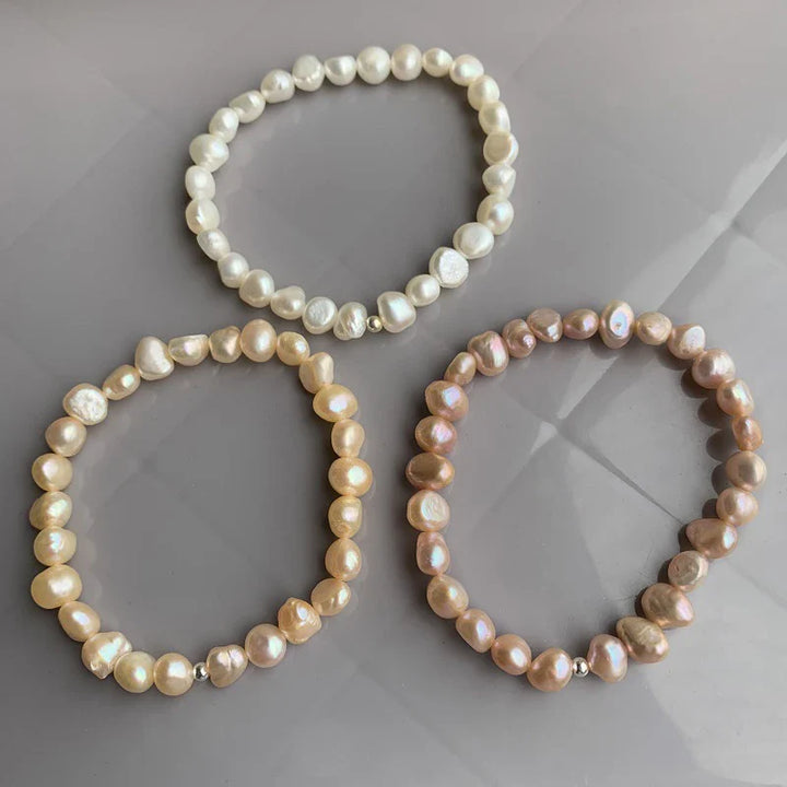 The rooftop’s alive with fairy lights, laughter spilling like champagne, and you flick your wrist—this baroque pearl bracelets stack like a secret constellation, 925 sterling silver beading 7-8mm freshwater pearls in white, pink, or purple hues on elastic rope that stretches 16-20cm to hug your vibe. A soft clink against your flute, cool silver warming fast. It’s wild you wear. Ever think flaws could make the whole night feel perfectly you?