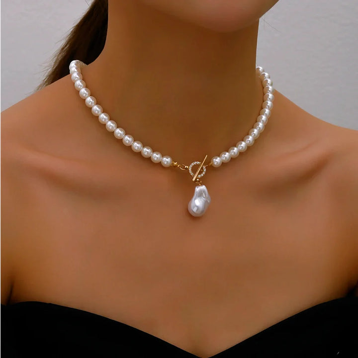 The garden’s hushed for the vows, roses heavy with dew, and you step onto the petal-strewn aisle—this big pearl pendant hangs like a full moon promise, a 2cm perfectly round simulated pearl on a whisper-thin choker that glows against your throat. A soft clink when you breathe, cool orb warming slow. It’s forever bold. Ever think one pearl could make the whole “I do” feel like it’s orbiting you?