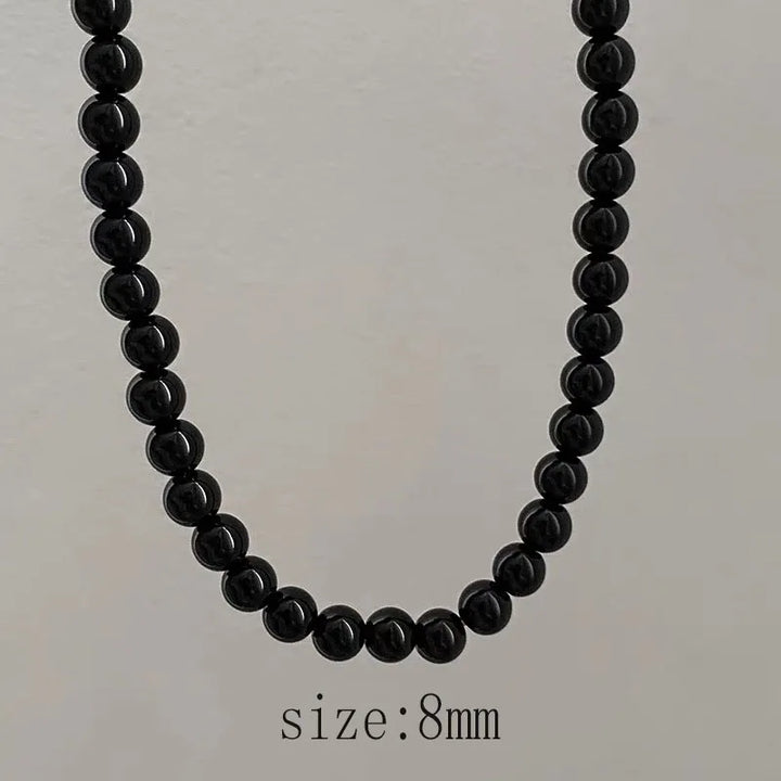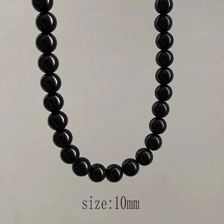 The café’s tucked in a shadowy corner, fairy lights twinkling like secrets, and you lean in to blow out your candle—this black pearl necklace designs hugs your neck in a velvet choker of perfectly round simulated pearls, midnight orbs catching every flicker without a chain in sight. A soft hush when you move, like whispers in the dark. It’s mystery you can touch. Ever think a birthday wish could wrap itself around your throat and stay?