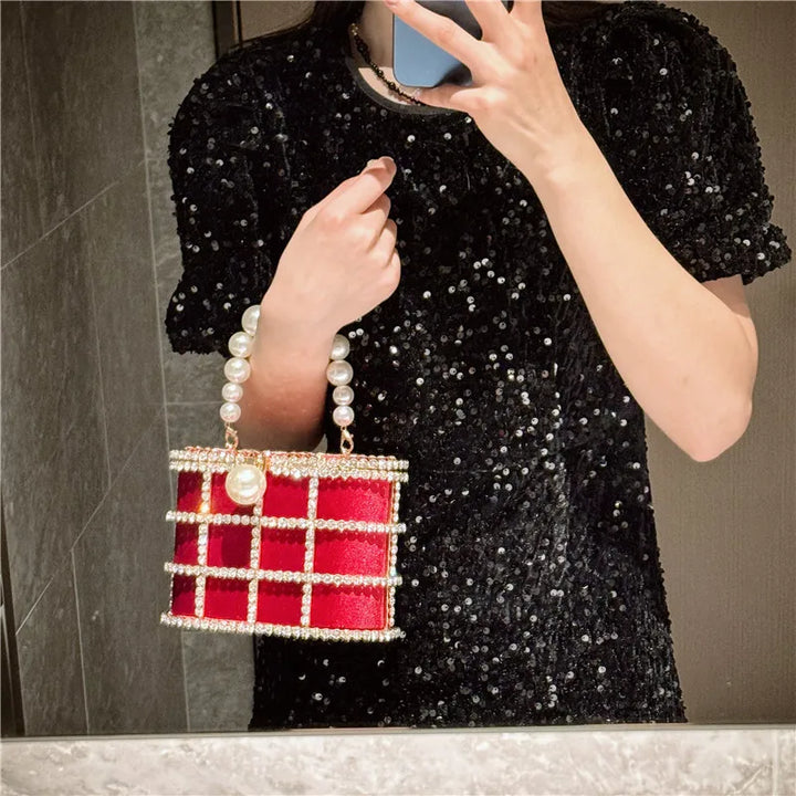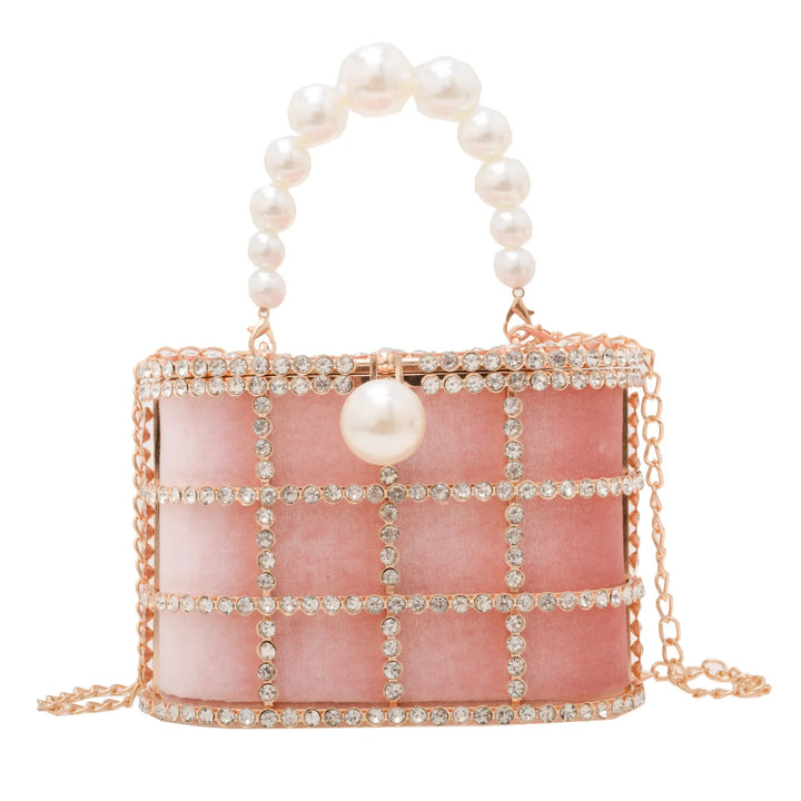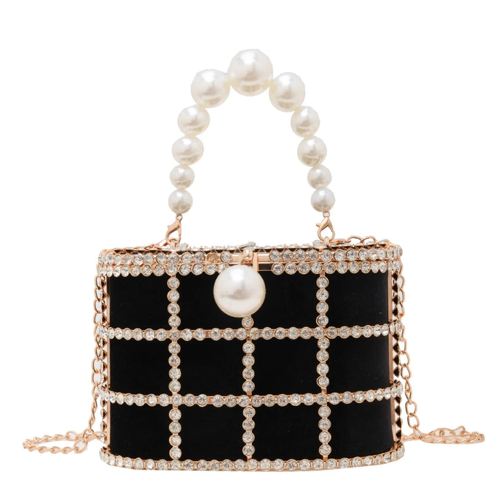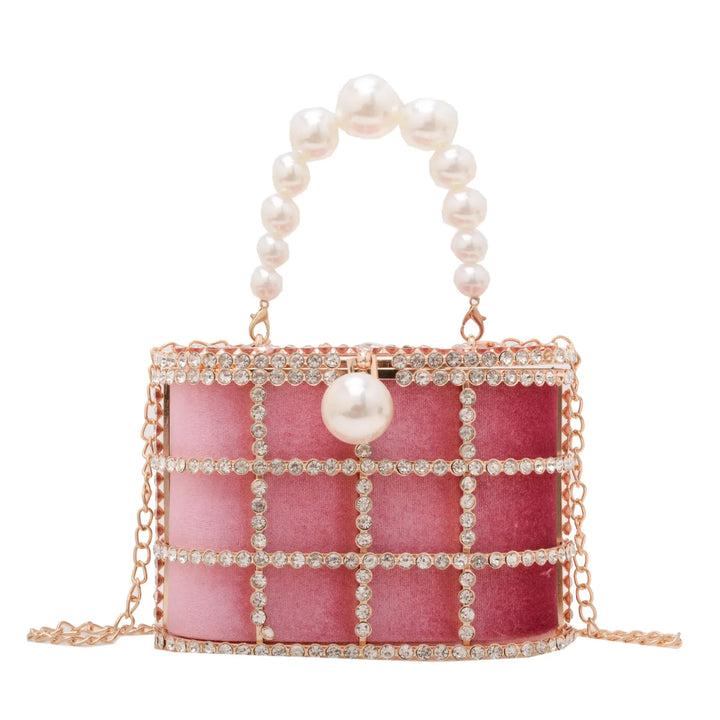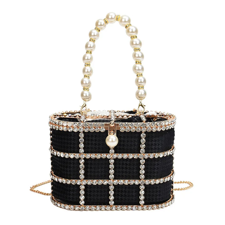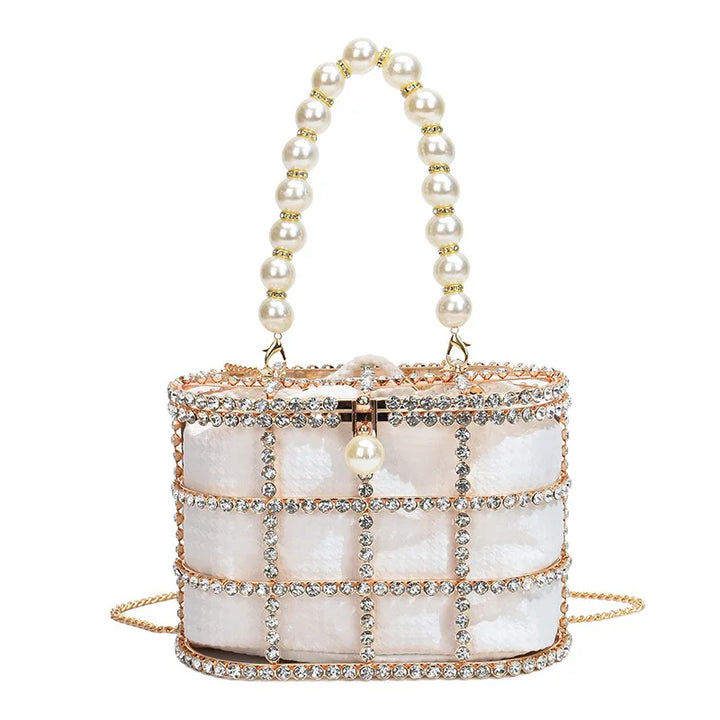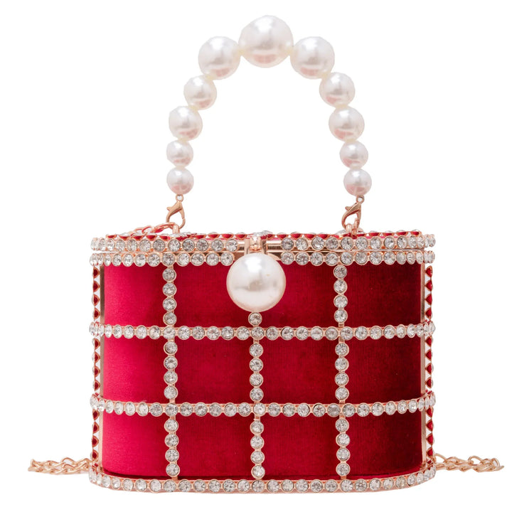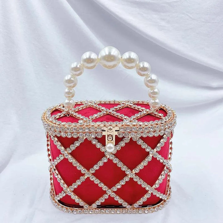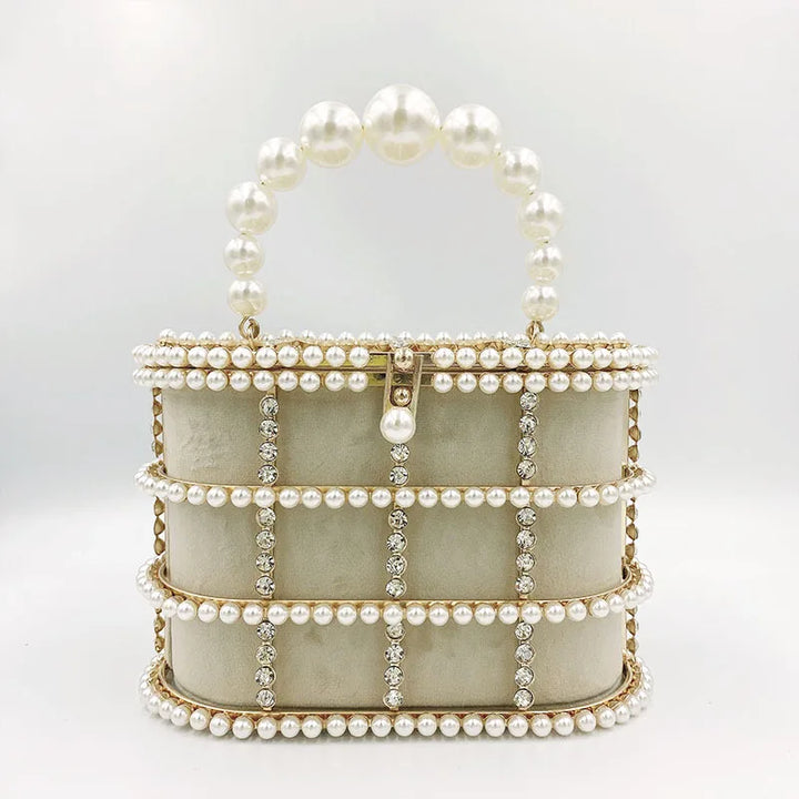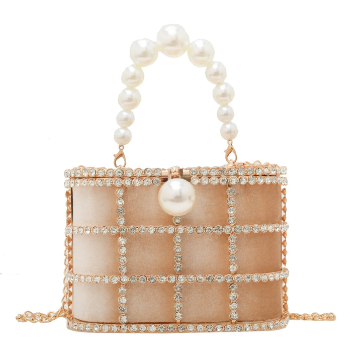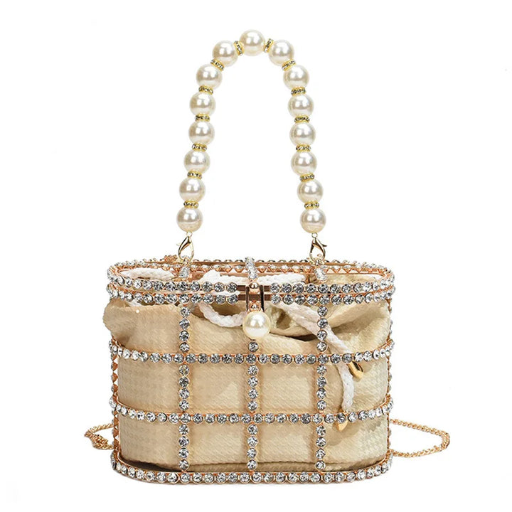 Step into the spotlight with the Bucket Bag with Pearls, a radiant statement piece that blends architectural design with luxe detailing. Crafted for women who dare to stand out, this metallic evening bag is more than just an accessory it's a piece of wearable art.