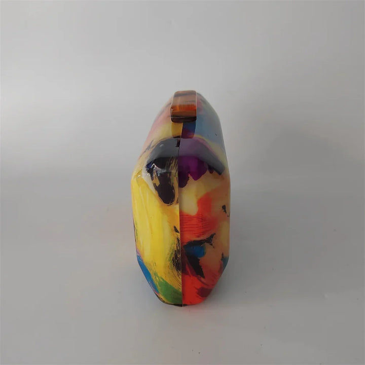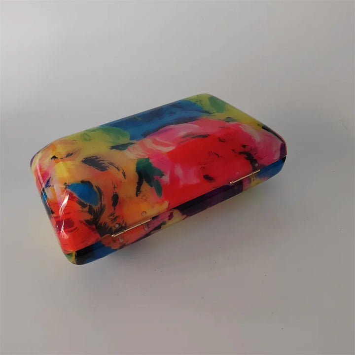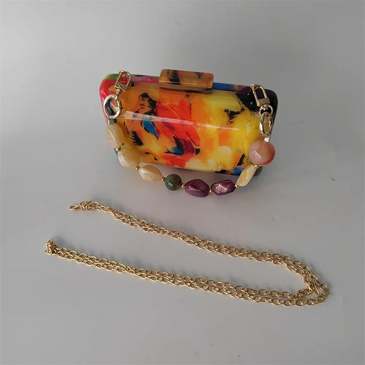 Crafted from durable acrylic and detailed with handmade floral artistry, this purse is a love letter to elegance, encased in a shell of shimmering modernity.