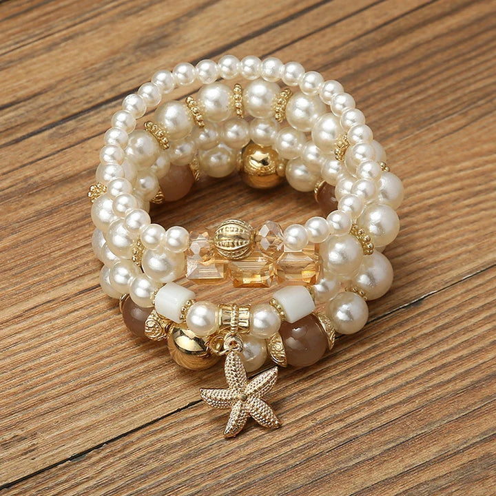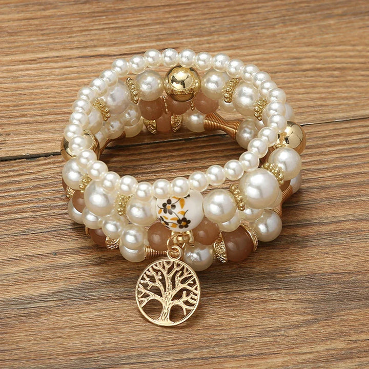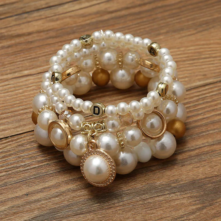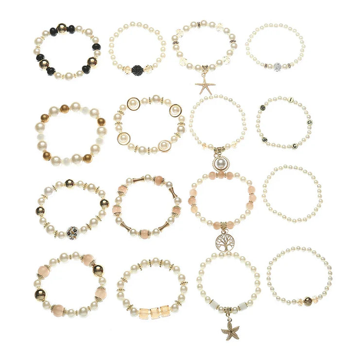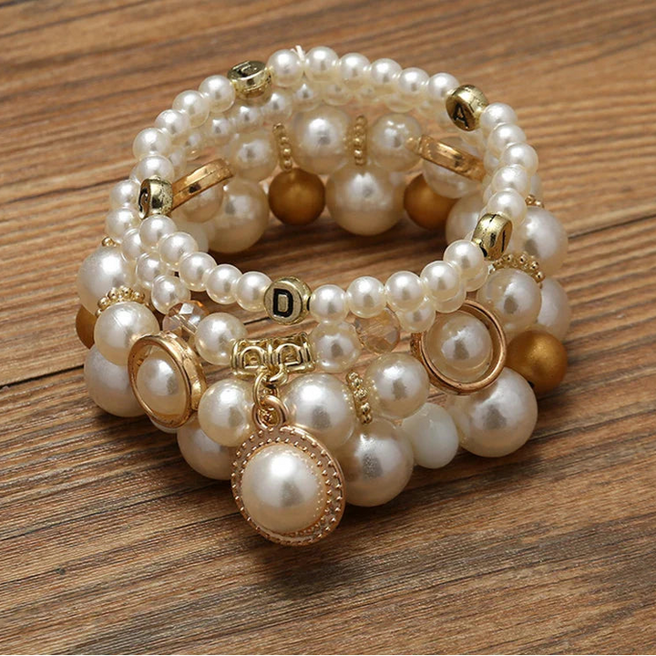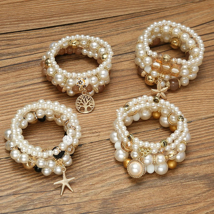 The vintage flea market’s humming under string bulbs, old records spinning slow, and you reach for a vinyl—this layered pearl stretch bracelets slip like forgotten love letters, zinc alloy beading acrylic pearls in a multi-strand vintage tumble that catches every warm glow. A hushed clink against the sleeve, cool beads warming quick. It’s nostalgia you stack. Ever think layers could make the whole afternoon feel like it’s hugging you?