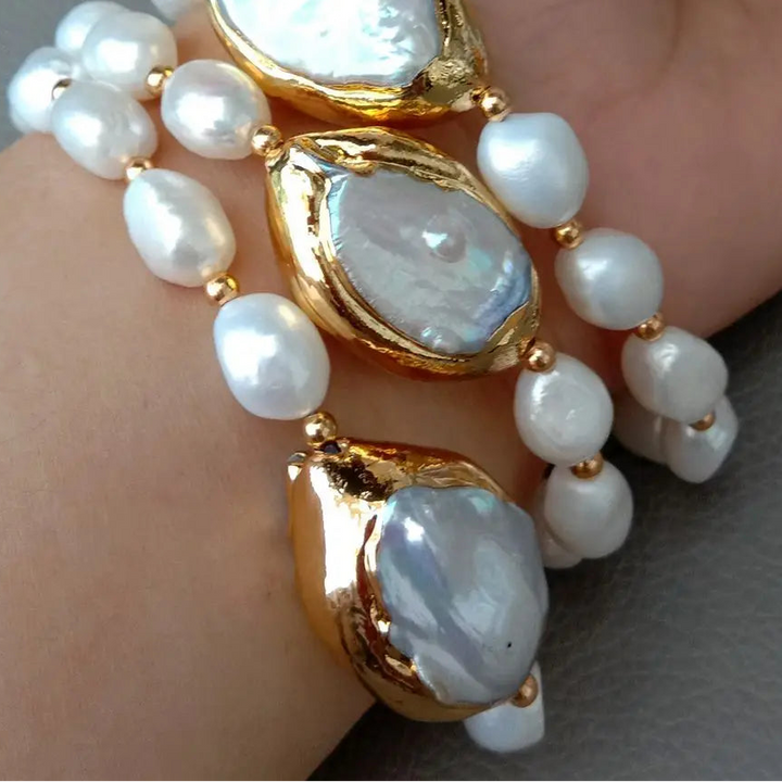 • Oval freshwater pearls → Creamy drops glowing like morning mist, turning nods into awe, draping you in timeless radiance.