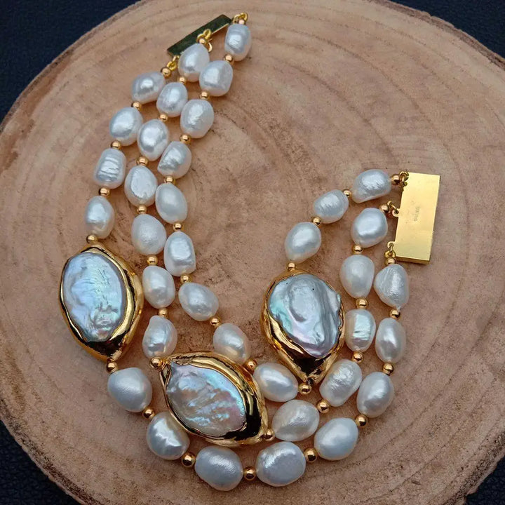 The café terrace’s buzzing soft at brunch, mimosa fizzing gold, and you rest your hand on the table—this small pearl bracelet nestles like a whispered heirloom, copper strand weaving oval freshwater pearls in a geometric clasp that catches every sunbeam. A faint clink against porcelain, cool metal warming slow. It’s legacy you slip on. Ever think something tiny could make the whole morning feel like it’s smiling you?