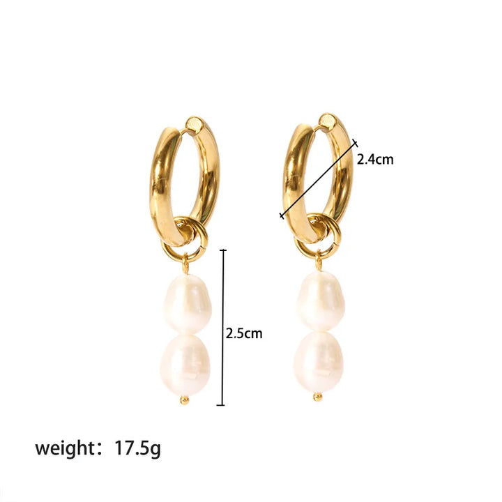 The yacht’s gliding slow, sunset bleeding gold on the waves, and you lean against the rail—these freshwater pearls drop like liquid light from stainless steel studs, catching every ripple in a warm shimmer. A faint clink against the glass in your hand, cool metal kissing lobes. They’re luxury that sails. Ever think a teardrop could make the ocean look up at you?