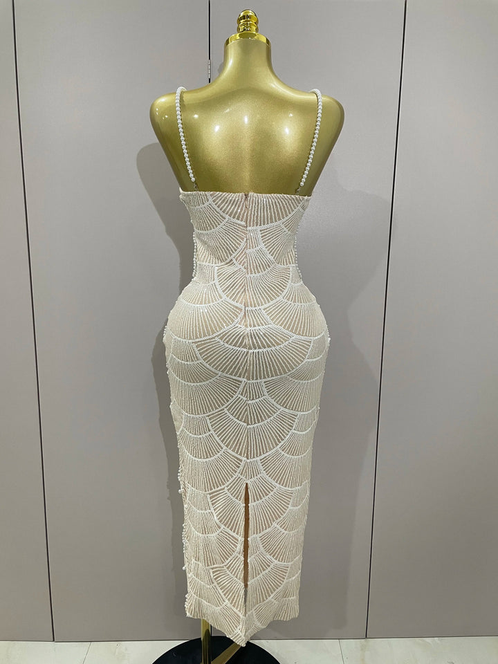 Picture this: the golden hour at that rooftop party, city lights beginning to twinkle below as you step into view. Our pearl beading long dress catches the last rays of sunlight, each bead glowing like tiny moons against your skin. The way the fabric drapes and flows creates an aura of mystery, while the delicate beading whispers secrets with every step. The slight stretch moves with you, never against you, allowing you to dance, mingle, and captivate effortlessly. Have you ever worn something that feels like it was designed just for you?
