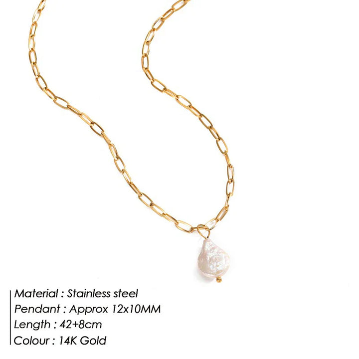 The rooftop’s buzzing, fairy lights tangled in the breeze, and you tilt your head back—this pearl necklace coils like liquid moonlight, stainless steel snake chain laced with simulated pearls that catch every twinkle, a tiny moon charm resting just above your heartbeat. A soft clink when you laugh, cool metal warming fast. It’s night you can wear. Ever think a chain could make the whole party orbit you?