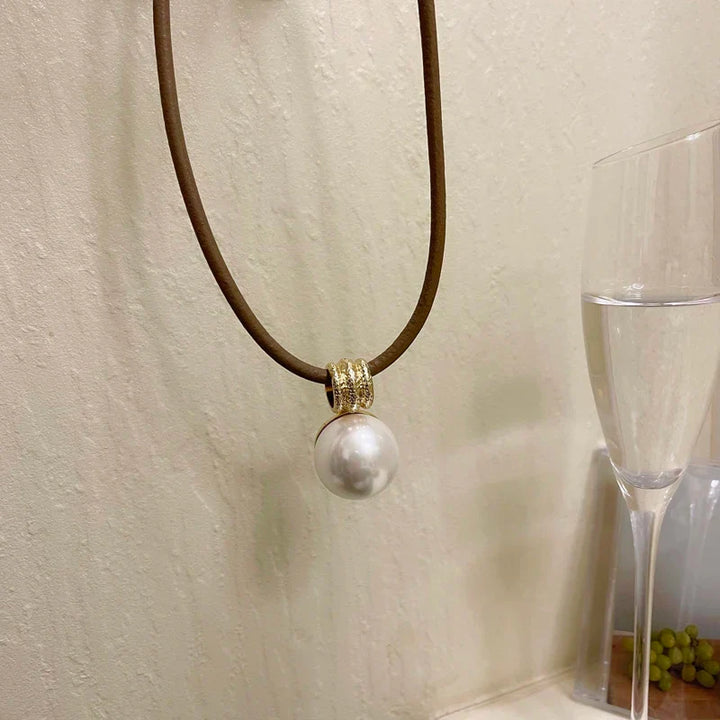 The lounge’s velvet booths are humming, cocktails glowing amber, and you cross your legs—this pearl pendant set in gold drops like a secret from a link chain, simulated pearl gleaming round in a geometric cradle, catching every low light with a soft clink against your skin. Warm metal, cool pearl. It’s luxury that whispers. Ever think a single drop could make the whole room tilt toward you?