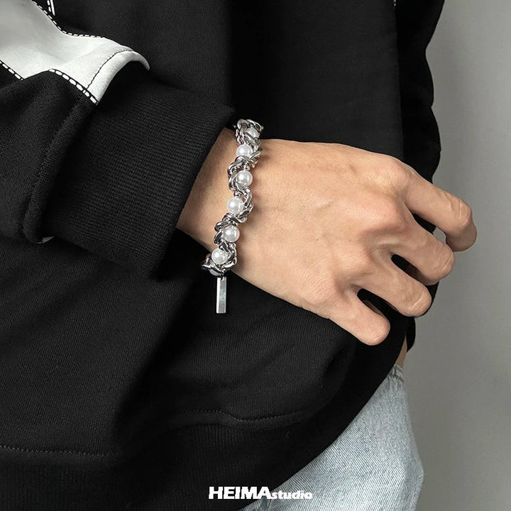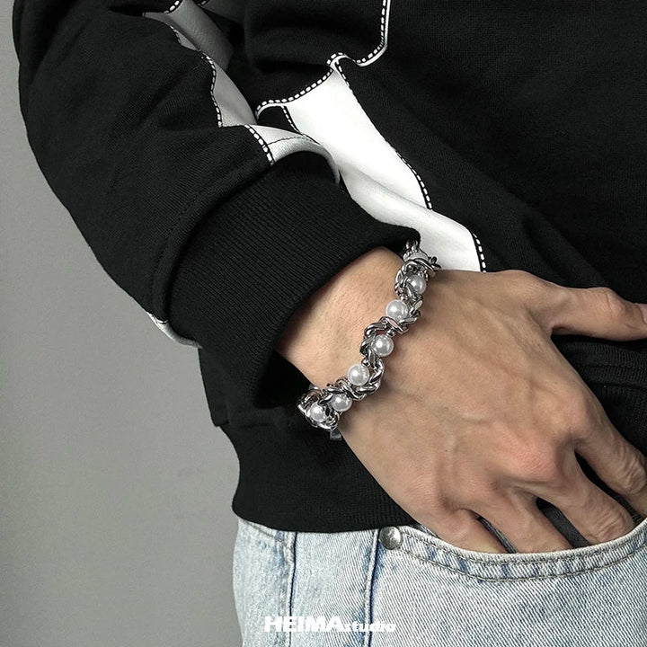 Clasp it on and watch heads turn—someone growls “dope,” another just mirrors your grind. It becomes the bracelet you grab for alley raves, for quiet rebellions, for days when tame feels wrong. Years later, one link scarred from that one perfect mosh, it’ll still blaze. Because the toughest style doesn’t break; it flows, pearl by quiet pearl.