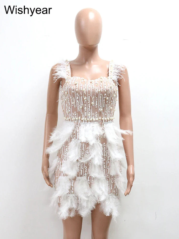 In our coastal atelier, each Pearl Strap Dress begins as a vision of freedom meeting elegance. Our artisans were inspired by those magical evenings when urban energy meets natural beauty—the way feathers dance in the wind, the contrast of architectural lines against the sunset sky. The process is almost meditative—selecting feathers of just the right softness, positioning them to create movement with every step, ensuring the spaghetti straps provide both support and delicate beauty. When you wear this feather-adorned dress, you're not just wearing fabric and embellishments—you're wearing the spirit of bohemian elegance itself. The subtle weight of the feathers creates a gentle rhythm as you move, like whispers of ancient tales told through modern fashion. This isn't just clothing—it's connection to those moments when you feel most yourself, most alive, most untethered.