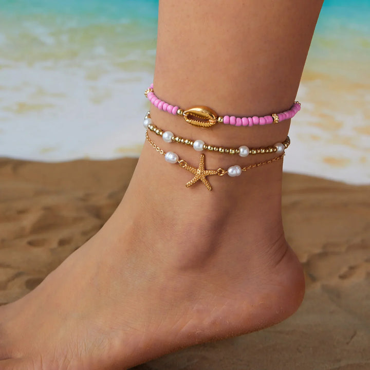 Starfish Shell Rice Beads Anklet – Ocean's Whisper Around Your Ankle