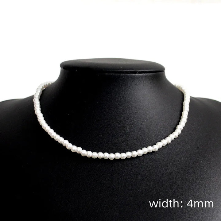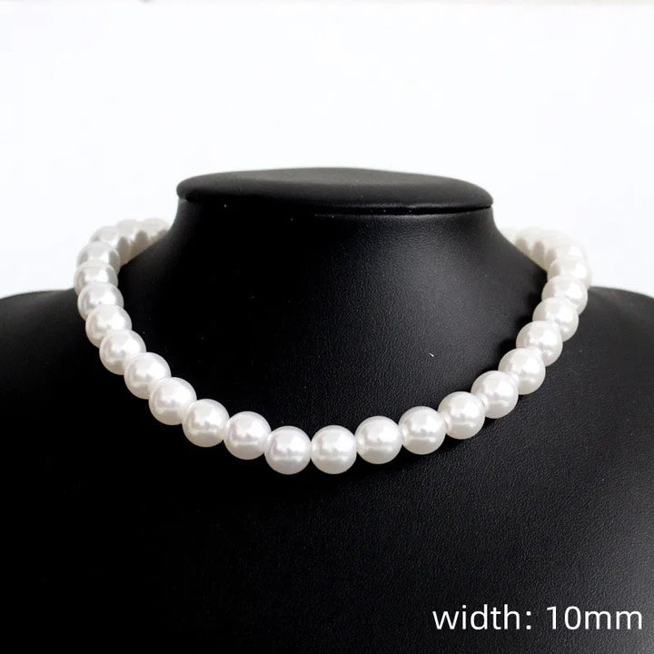 The festival’s pulsing, dust kicking under boots, and you lean against the rail—this trendy pearl necklace men slides on like a low-key flex, zinc alloy threading glass pearls in a 40+5cm chain that catches every strobe. A soft clink against your tee, cool links warming quick. It’s grit with glow. Ever think pearls could make the whole crowd wonder what rules you’re breaking?